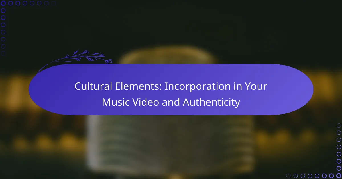 Incorporating cultural elements into your music video can enhance authenticity and resonate with audiences. Effective methods include utilizing traditional costumes, integrating local music styles, and showcasing cultural rituals.